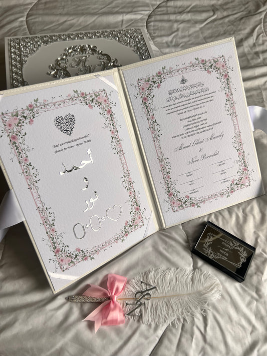 Nikkah certificates, A4 booklets, wedding favours & personalised pens