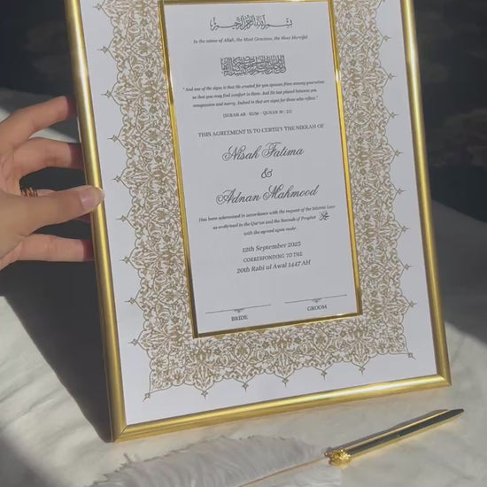 A4/A3 gold acrylic detailed nikkah certificate - feather pen - frame - wedding certificate