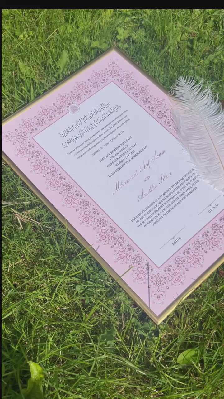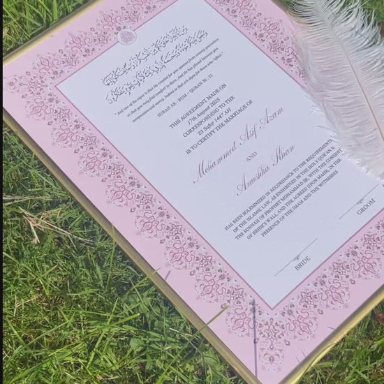 A4/A3 nikkah certificate - feather pen - folder - wedding certificate